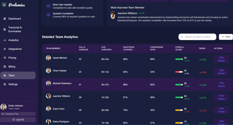 Dank Prolumios haben wir Echtzeit-Uploads der Anrufe eingerichtet, sodass wir direkt danach eine Anruf-Scorecard erhalten können!