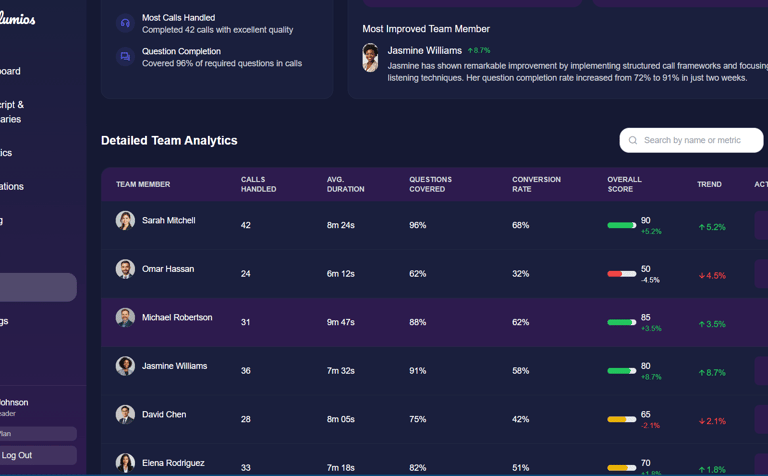 Thanks to Prolumios, we've set up real-time uploads of the call so we can get a call scorecard right after it happens!