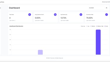 Conversion Likelihood Lerne aus jedem Call. Basierend auf Kundensignalen, Einwandmustern und Buyer-Intent berechnet die KI die Wahrscheinlichkeit eines Abschlusses.