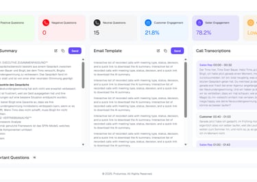 1. Call-Analyse im Hintergrund Dein KI Sales Assistent wertet das Gespräch aus, erkennt automatisch Redeanteile, die Stimmung des Kunden und die Qualität deines Verkauf Gesprächs.